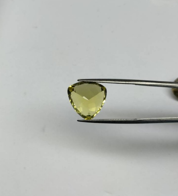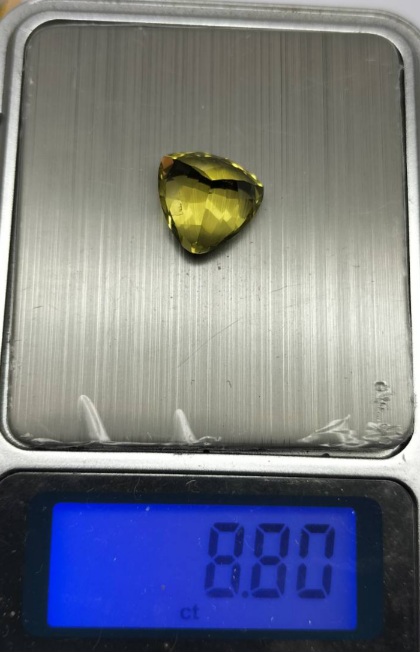 พลอยเลมอนควอตซ์ ทรงสามเหลี่ยม น้ำหนัก 8.80 กะรัต ไม่ผ่านการเผา