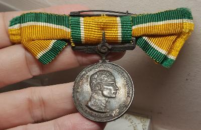 เหรียญแพรแถบเนื้อเงิน ในหลวงรัชกาลที่ 9 ในพิธีฉลองศิริราชสมบัติครบ 25 ปี สภาพสวยสมบูรณ์