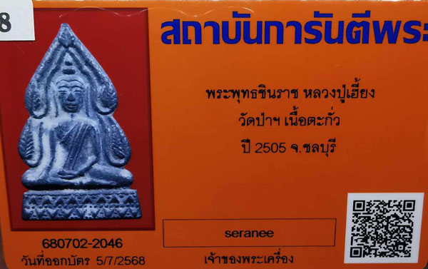 พระพุทธชินราช หลวงปู่เฮี้ยง วัดป่าฯ เนื้อตะกั่ว ปี2505 จ.ชลบุรี + บัตรG-pra สภาพเดิมค่ะ |