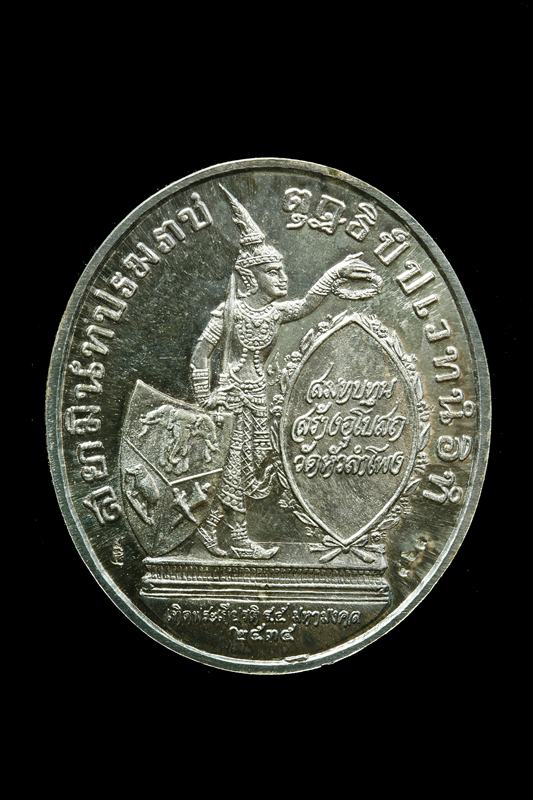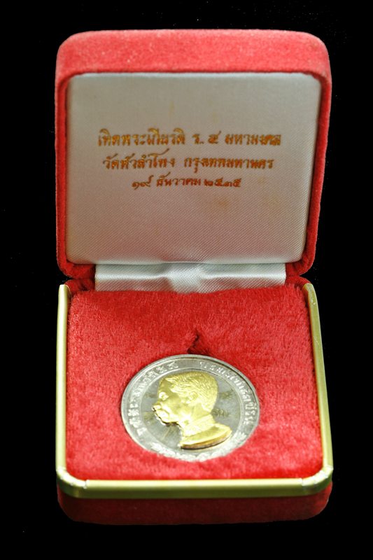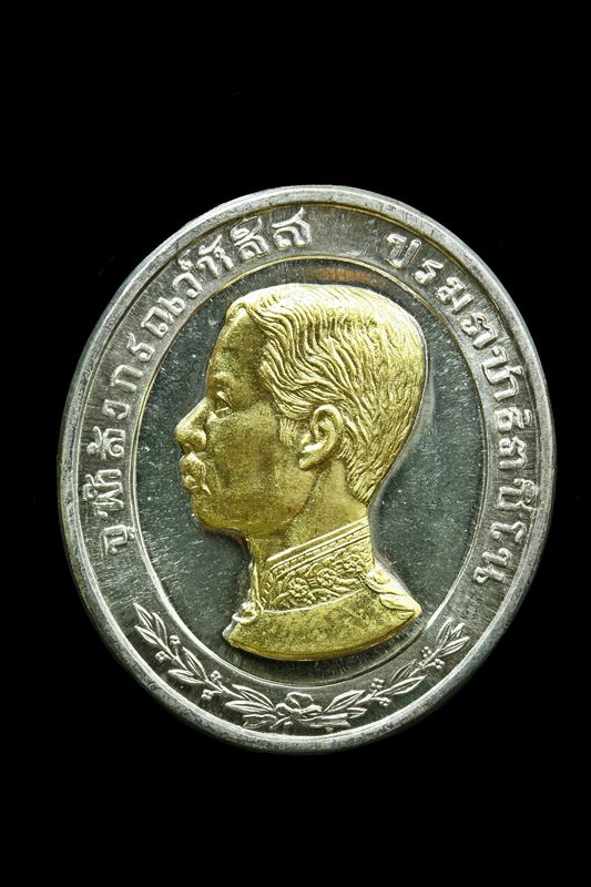 เหรียญ ร.5 ปั้มแบน-พิมพ์ทรงยินดี-รูปไข่ใหญ่-ไม่มีห่วง (( เนื้อเงิน-หน้าทองคำแท้ )) สร้างโดย วัดหัวลำโพง กทม. รุ่นเทิดพระเกียรติ ร.5 มหามงคล ลพ.เกษม เขมโก ร่วมเสก 19 ธ.ค.2535 ((พร้อทกล่องเดิม))