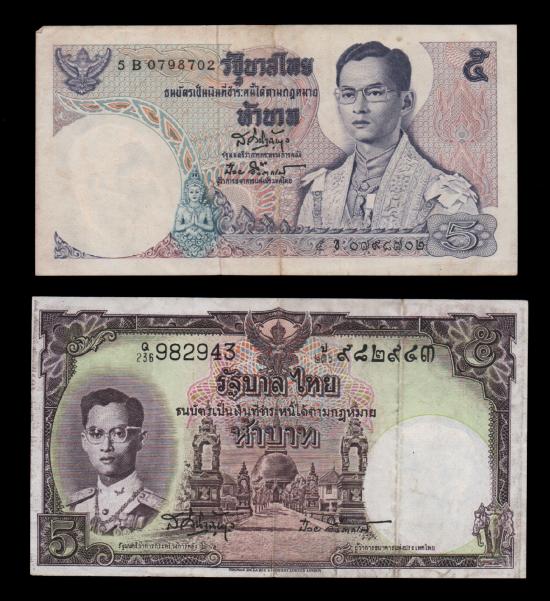 วัดใจ เคาะเดียว ธนบัตรในหลวงรัชกาลที่๙ รุ่นเก่า ชนิดราคา 5 บาท จำนวน 2 ใบ 2 รุ่น น่าสะสม |