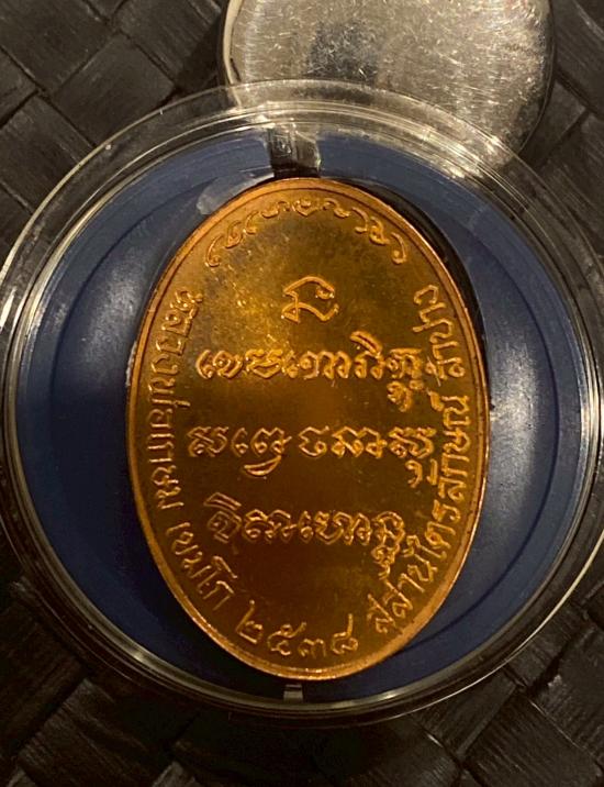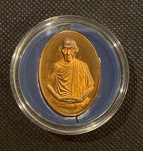 เหรียญทรงไข่ หลวงพ่อเกษม เขมโก รุ่นดี 7 รอบ เนื้อทองแดง ขัดเงา ปี 2538 พร้อมกล่องเดิม