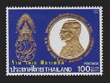 แสตมป์ทอง - ในหลวงรัชกาลที่ 9 ปี 2530 ครบรอบ 60 พรรษา - ยังไม่ใช้ - สีสวยสด สภาพเดิมครับ ไม่ซีด