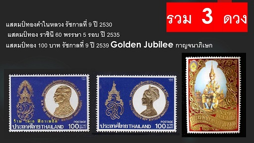 แสตมป์ทองคำในหลวง รัชการที่ 9 รวม 3 ดวงๆละ 100 บาท |