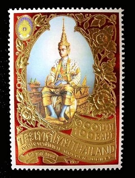 แสตมป์ทอง 100 บาท รัชกาลที่ 9 ปี 2539 |