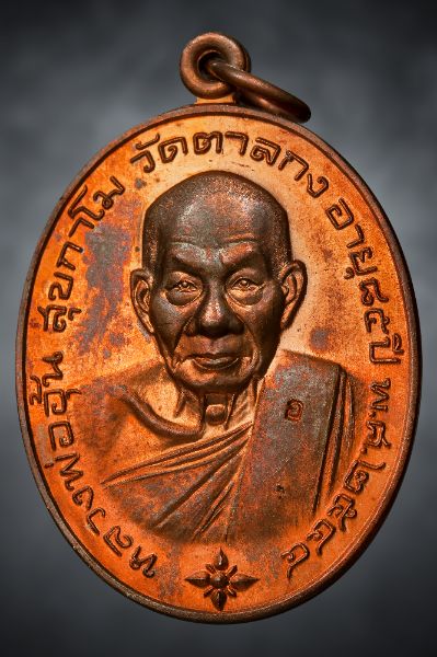 เหรียญโภคทรัพย์ หลวงพ่ออุ้น เนื้อทองแดง ปี 2544 (วัดใจ)