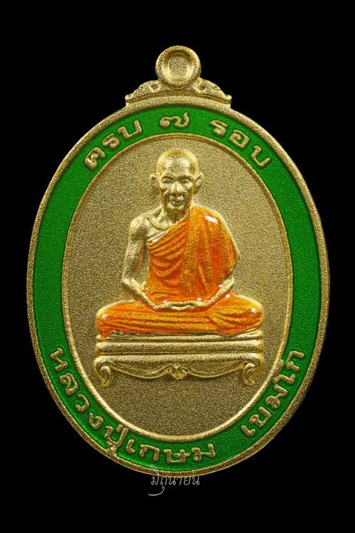 เหรียญปั้ม-แบน-พิมพ์รูปไข่ใหญ่ ((เดิมเนื้อทองแดง-ทำผิวซาตินทองให-ลงยา 2 สี ใหม่-ล้อเนื้อทองคำ)) ล.พ.เกษม เขมโก สนส.ไตรลักษณ์ รุ่นครบ 7 รอบ ออก 2538 ((พร้อมกล่องบรรจุเดิมๆ-ใหม่-สมบูรณ์-สวยกริ๊บ))