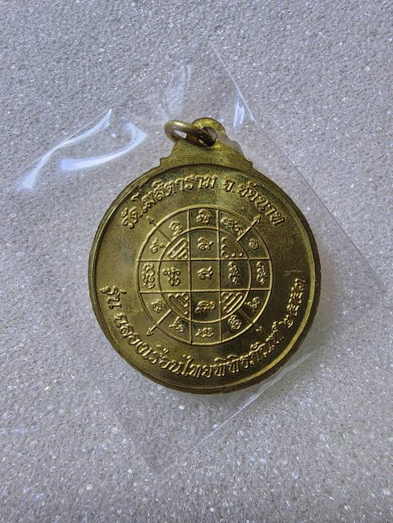 เหรียญกลมหลังยันต์ หลวงพ่อกวย ชุตินุธโร วัดโฆษิตาราม รุ่นฉลองเรือนไทย ปีพ.ศ.2553