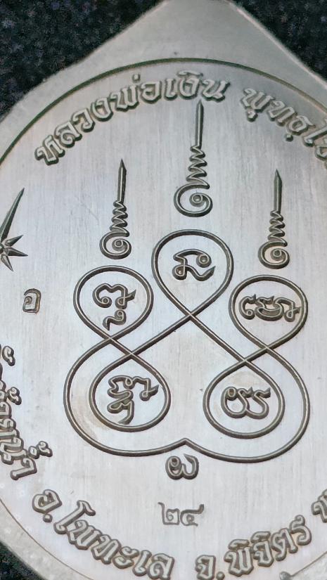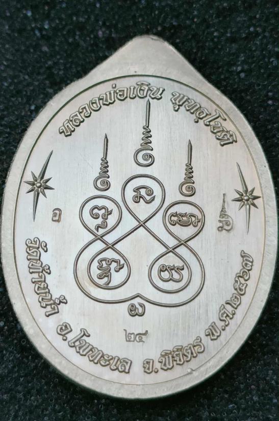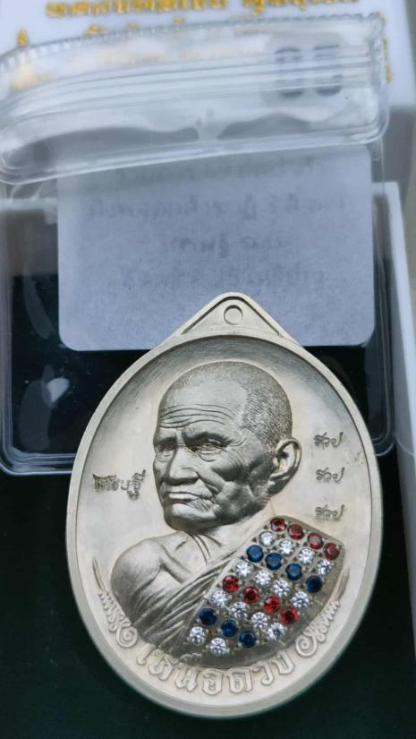 เหรียญหันข้างรุ่น"เหนือดวง"หลวงพ่อเงิน พุทธโชติ วัดบางคลาน พิจิตร(ออกวัดท้ายน้ำ) เนื้ออัลปาก้า ฝังพลอย3สีเต็มสังฆาฏิ(29เม็ด)ตอก"เศรษฐี รวย รวย รวย" หมายเลข 24 พร้อมกล่อง (สร้างเพียง25เหรียญ)