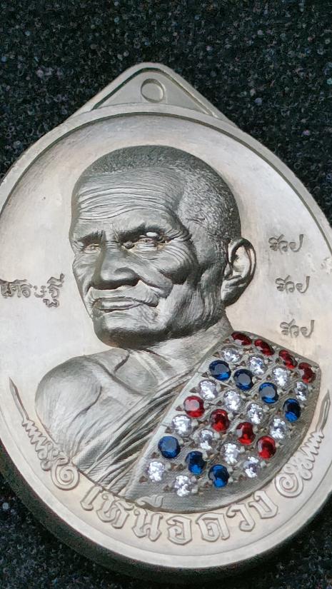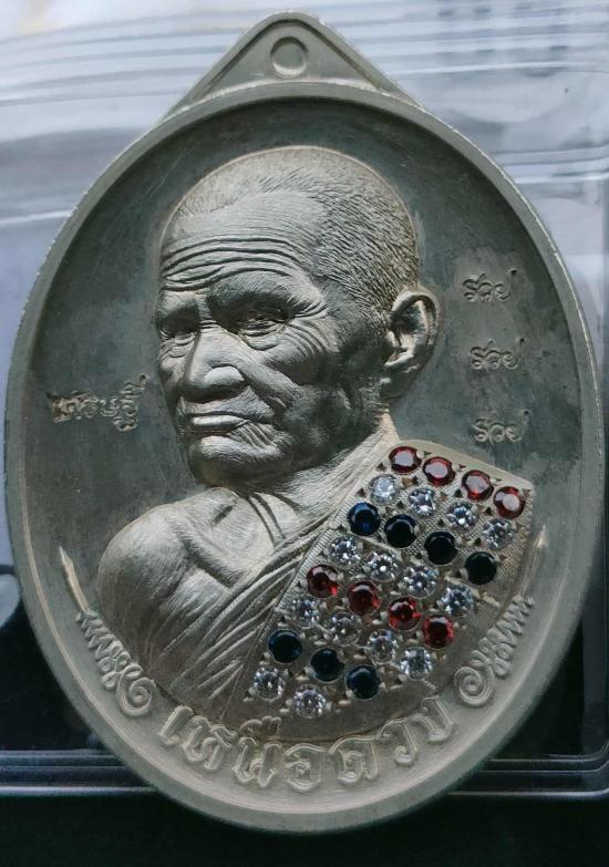 เหรียญหันข้างรุ่น"เหนือดวง"หลวงพ่อเงิน พุทธโชติ วัดบางคลาน พิจิตร(ออกวัดท้ายน้ำ) เนื้ออัลปาก้า ฝังพลอย3สีเต็มสังฆาฏิ(29เม็ด)ตอก"เศรษฐี รวย รวย รวย" หมายเลข 24 พร้อมกล่อง(สร้างเพียง25เหรียญ)
