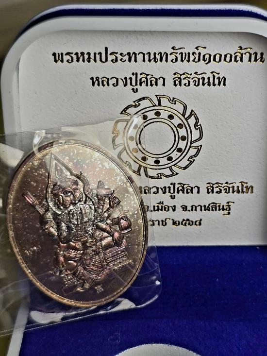 เหรียญ พรหมประทานทรัพย์ ๑๐๐ ล้าน หลวงปู่มหาศิลา หลวงปู่ศิลา สิริจันโท ธรรมอุทยาน วัดพระธาตุหมื่นหิน จ.กาฬสินธุ์ เนื้อนวะฤทธิ์ พลายเงิน เลข 1019 มีกล่องเดิม ราคาจอง 1499 บาท