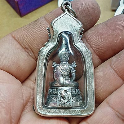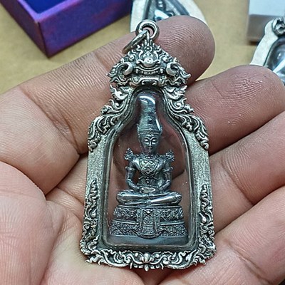 พระแก้วมรกต กรมสรรพสามิตจัดสร้าง วัดพระศรีรัตนศาสดาราม เนื้อเงิน ปี 2539 พร้อมเลี่ยมกรอบเงินแท้ 92.5% ขึ้น งานมือ กรอบหนา รมดำ สวยๆ.. กล่องเดิม 1