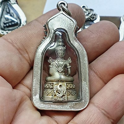 พระแก้วมรกต กรมสรรพสามิตจัดสร้าง วัดพระศรีรัตนศาสดาราม เนื้อเงิน ปี 2539 พร้อมเลี่ยมกรอบเงินแท้ 92.5% ขึ้น งานมือ กรอบหนา รมดำ สวยๆ.. กล่องเดิม