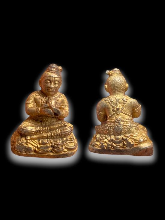 ***กุมารทอง เนื้อทองเหลืองเก่าจัด พรายทองขึ้นทั่วองค์ รายละเอียดใบหน้าและเครื่องแต่งกายชัดเจน มีคราบเก่าธรรมชาติสวยเดิม