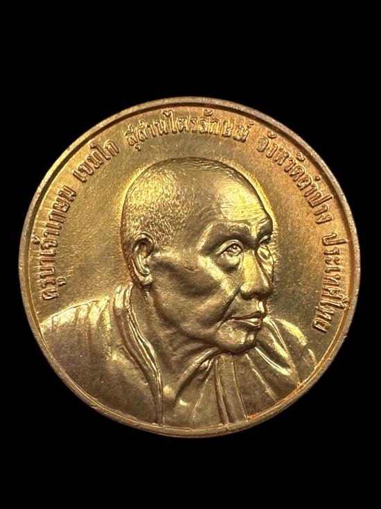 เหรียญกลมหันข้าง รุ่นครบ ๕ รอบ ๖๐ พรรษา หลวงพ่อเกษม เขมโก ปี ๒๕๓๖ เนื้อทองแดงผิวไฟ