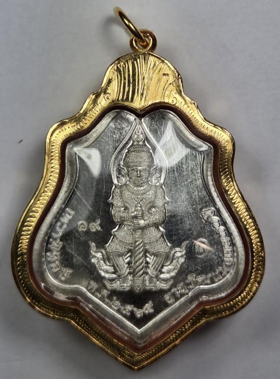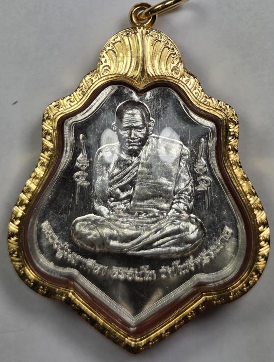 หลวงปู่พระมหาศิลา เหรียญ เต็มองค์ เนื้อเงิน หลัง ท้าวเวศสุวรรณ รุ่น เทวาพิทักษ์ เลข 19 เลี่ยมทองพร้อมบูชา..