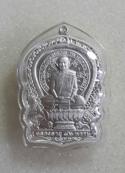 เหรียญนั่งพานเงินล้าน หลวงปู่ท่อน ญาณธโร เนื้อเงินสภาพสวยเลี่ยมรักษาผิว หมายเลข๓๒๔ พร้อมกล่องเดิม พิธีเสาร์ห้า พ.ศ.๒๕๕๗ วัดศรีอภัยวัน จ.เลย