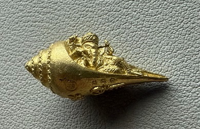 หอยสังข์พระพิฆเนศ ปางเสวยสุข เนื้อทองเหลือง พิธีเสาร์๕ หลวงปู่มหาศิลา สิริจันโท สวนสงฆ์แกแปะ วัดโพธิ์ศรีสะอาด No.997 สวยเกือบตอง