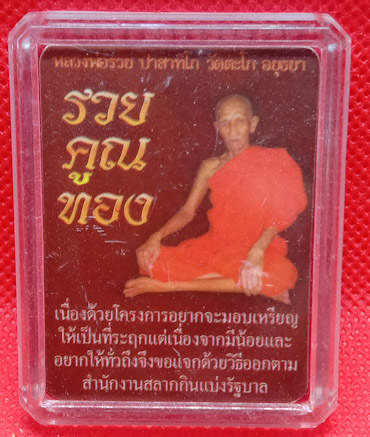 เหรียญหลวงพ่อรวย รุ่นรวยคูณทองเนื้ออัลปาก้าหน้ากากทองทิพย์ หลังตะกรุดทองคำหมายเลข1634