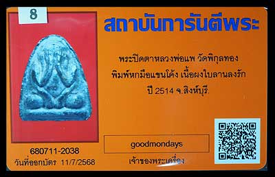 พระปิดตา เนื้อผงใบลาน ปี2514 หลวงพ่อแพ วัดพิกุลทอง สิงห์บุรี |