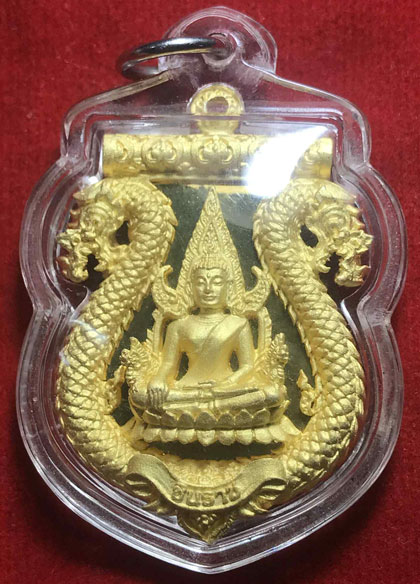 เหรียญพระพุทธชินราชเสมาฉลุลาย เนื้อทองทิพย์ ปี 2555 หลวงปู่แขก วัดสุนทรประดิษฐ์