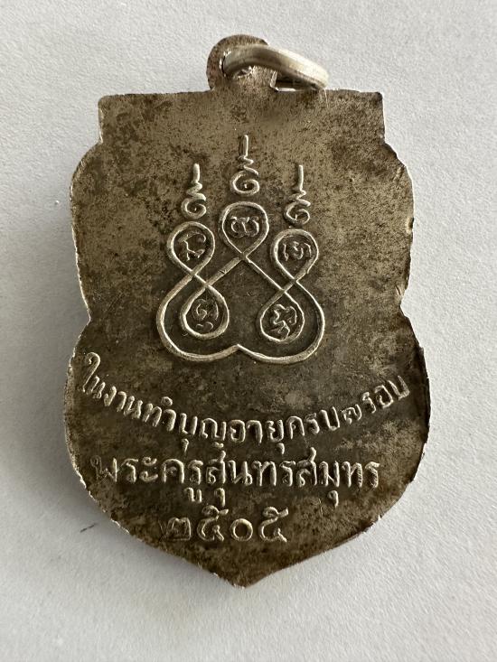 *เคาะเดียว*เหรียญเสมาพระครูสุนทรสมุทร (ปลั่ง) วัดกลางสมุทรปราการ เนื้ออัลปาก้า ปี 2505
