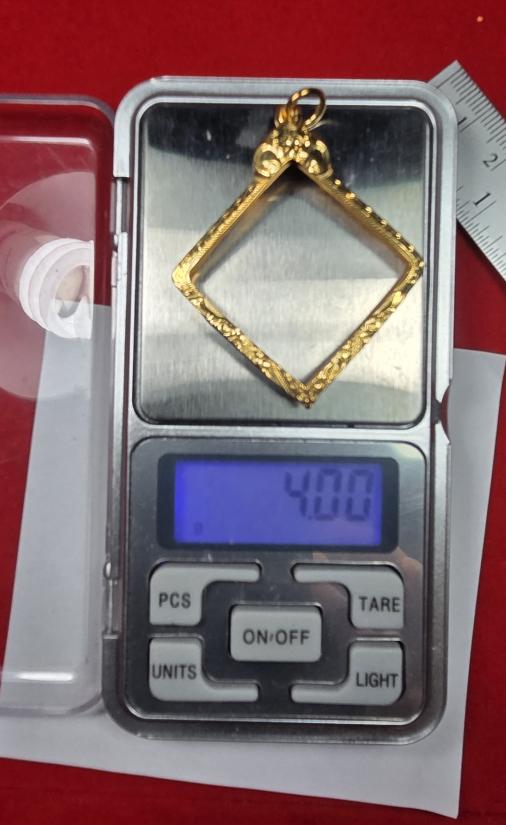 ซื้อมาไม่ได้ใช้ ขายพระไปก่อน น้ำหนัก 4 กรัมขนาดกว้าง3.5cm. ยาว 3.5cm. ยิงเปอร์เซ็นต์เนื้อทองได้ 63-70 เปอร์เซ็นต์ ออกบัตรเองลด 1,000