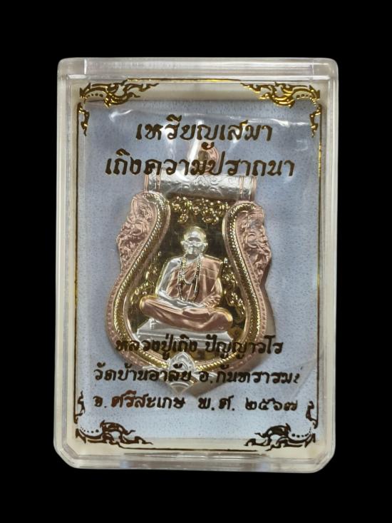 เหรียญเสมาเถิงความปรารถนา ลป.เถิง วัดบ้านอาลัย ศรีสะเกษ เนื้อสามกษัตริย์สวยมากๆกล่องเดิม 100 แดงครับ