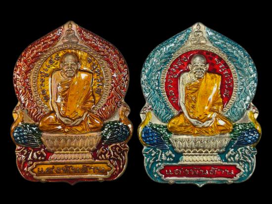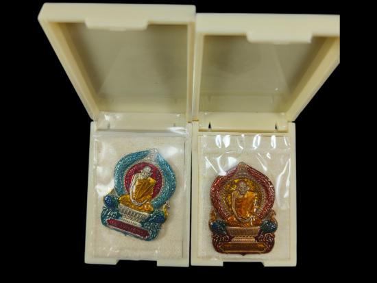 เหรียญเสมารุ่นแรกหลวงปู่แสง วัดโพธิ์ชัย นครพนม เนื้อโลหะลงยาสวยๆจำนวน 2 องค์+กล่องเดิมวัดใจ 100 แดงครับ |