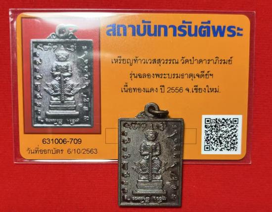 เคาะเดียวแดง เหรียญท้าวเวสสุวรรณ วัดป่าดาราภิรมย์ รุ่นฉลองพระบรมธาตุเจดีย์ฯ เนื้อทองแดง ปี 2556 จ.เชียงใหม่.