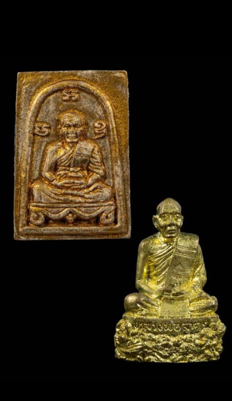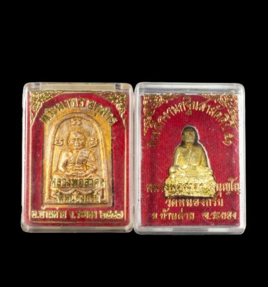 2องค์ หลวงพ่อสาคร พระรูปเหมือนปั๊ม ฐานปูปลา ตอกโค้ต ปี2551 ก้นอุดผงพรายกุมารหลวงปู่ทิม เนื้อทองเหลือง + พระผงพรายกุมาร พิมพ์เศียรโตใหญ่ หลังยันต์ห้า ปี2547 หลวงพ่อสาคร วัดหนองกลับ จังหวัด ระยอง เนื้อน