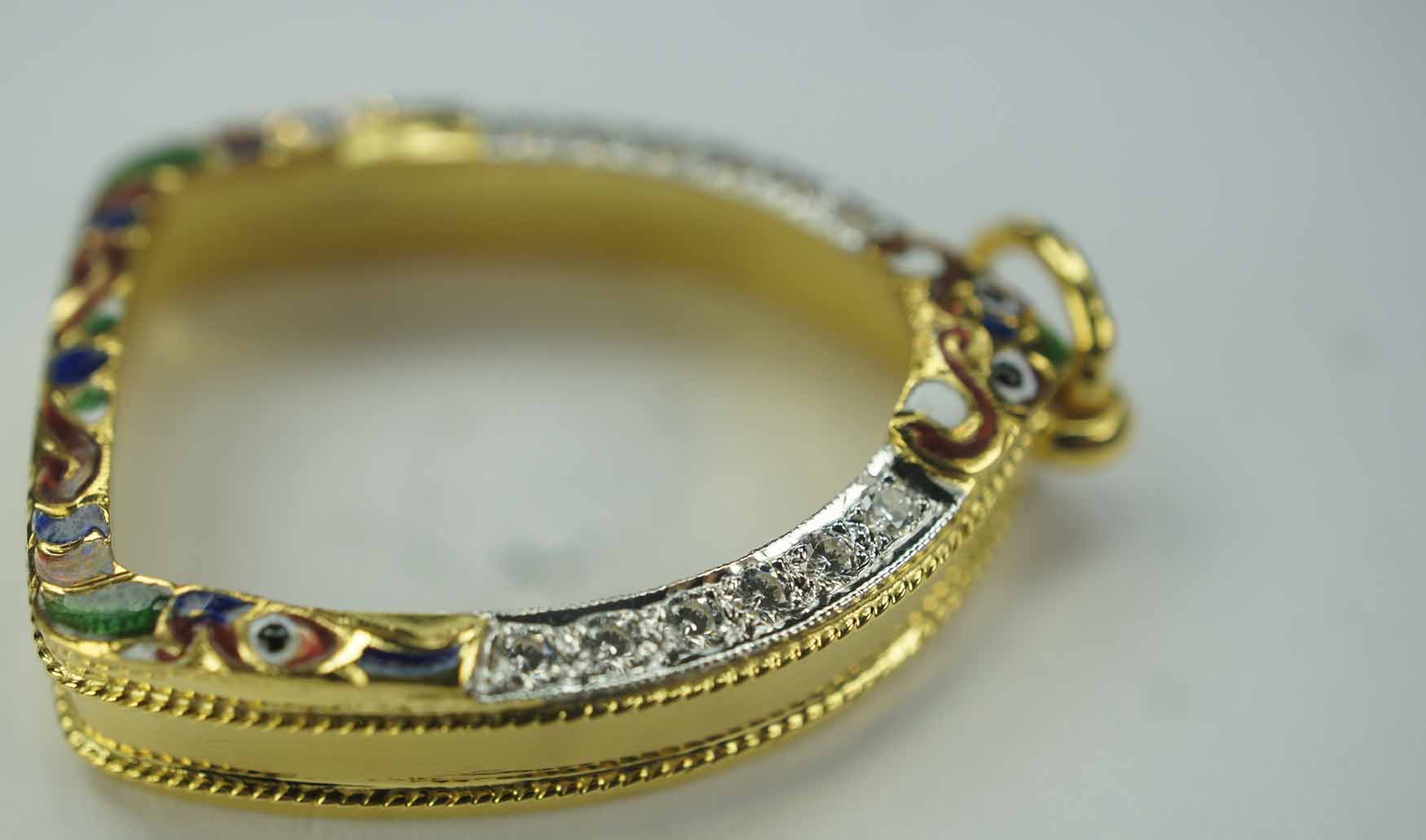 กรอบทองฝังเพชร ลงยายกซุ้ม หัวสิงห์ ข้างเกลียวโปเต้ 2 เส้น ปัดเงา ใส่พระปิดตาอุตโม หลวงปู่ทิม วัดละหารไร่ ฝังเพชร CZ 12 เม็ด ขนาดวัดจากขอบด้านใน สูง 2.2 Cm. กว้างฐานล่าง 1.5 Cm. งานขึ้นมือ น้ำหนัก 3.98 กรัม เปอร์เซ็นต์ทอง 65-70 เปอร์เซ็นต์ รับประกันตามกฏการันตีพระทุกข้อกำหนด ยินดีจัดส่งตรวจสอบเปอร์เซ็นต์ทองตามกฏใหม่ครับ ไม่ออกบัตร ลด 300 บาท สินค้าทุกชิ้น ส่ง EMS * ครับ การันตรีโดยศรีเมืองระยอง พระเครื่อง ( ที่ร้าน มีบริการรูดบัตรเครดิต ฟรีชาร์จ )
