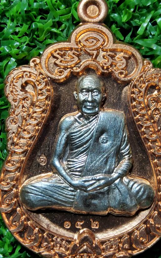 เหรียญเสมารุ่นแรก หลวงปู่ตี๋ ปวโร ออกวัดดอนขวาง เนื้อทองแดงหน้ากากเงิน เลข ๑๔๒ พร้อมกล่อง