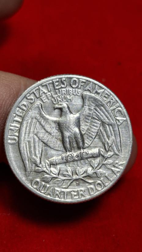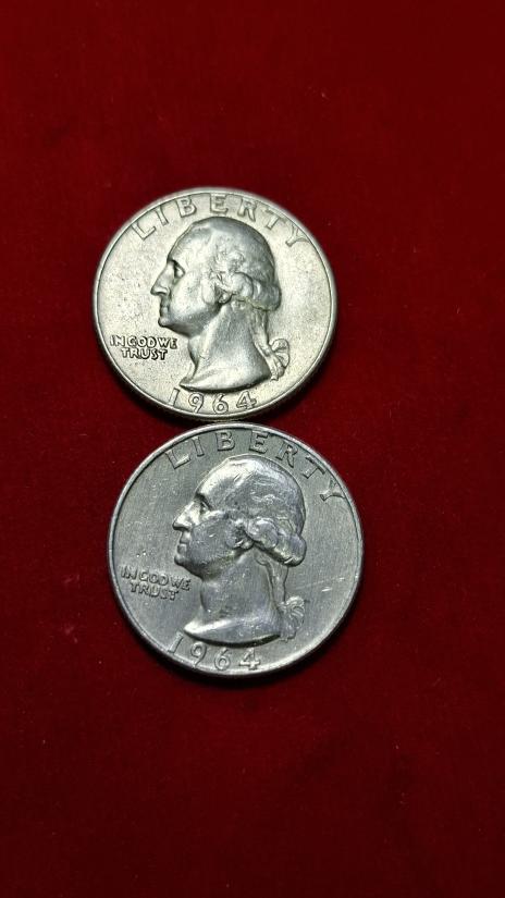 เหรียญควอเตอร์ (Quarter) ของสหรัฐอเมริกาปี ค.ศ. 1964 ซึ่งเป็นเหรียญสุดท้ายที่ผลิตด้วยเงิน 90% (ทั้งหมด2เหรียญ) |