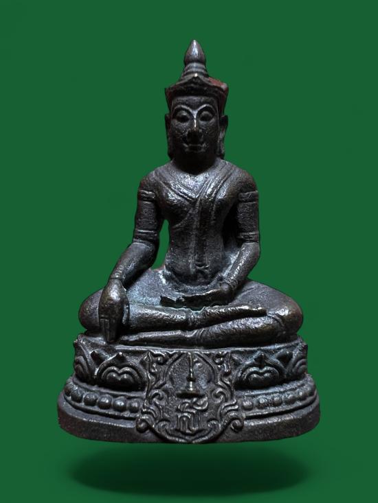 พระกริ่งรวมดวงใจเพื่อสายใจไทย มูลนิธิสายใจไทย วัดป่าชัยรังสี จังหวัดสมุทรสาคร เมื่อ 25 สิงหาคม 2532 สวย...ด้านหน้าอัญเชิญตราของสมเด็จพระเทพรัตน์ ฐานองค์พระเป็นรูปช้าง สภาพเดิม |