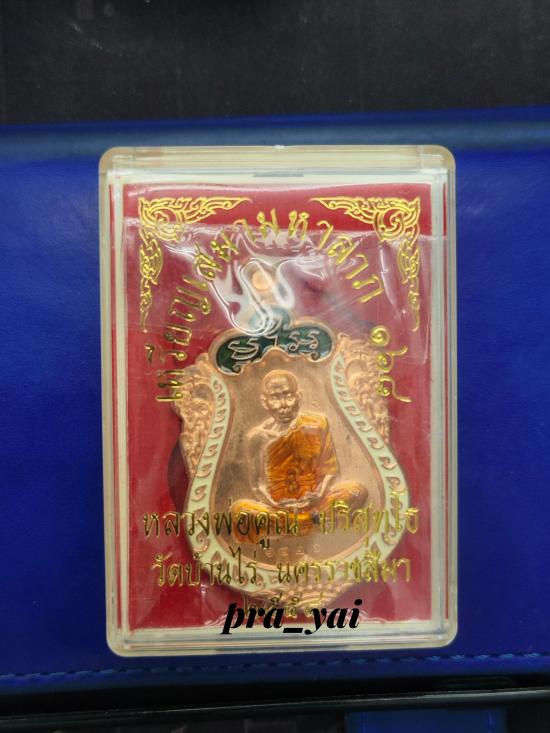 เหรียญเสมามหาลาภ 168 หลวงพ่อคูณ ปริสุทโธวัดบ้านไร่ นครราชสีมา ปี 2558 เนื้อทองแดงลงยายันต์เขียว หมายเลข 1426 พร้อมกล่องเดิม