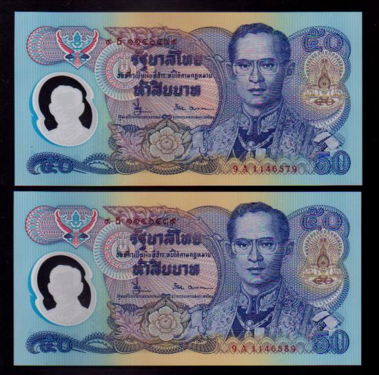 ## ธนบัตร 50 บาท ## กาญจนา ## 2 ฉบับ ## ไม่ผ่านการใช้ |