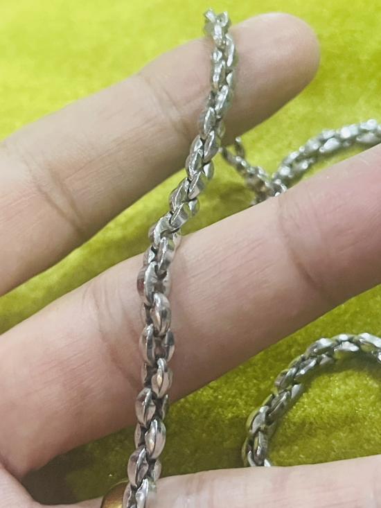 สร้อยสแตนเลสอย่างดีแทบไม่ได้ใช้ เกรดเอ ผมไม่ทราบเรียกว่าลายอะไร ความยาว24-25นิ้ว โดยประมาณ ของดีราคาถูก ราคาตามใจ ถูกกว่าเยอะแถมได้ของดี |