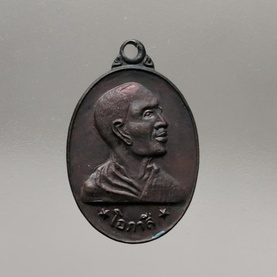 เหรียญหันข้างหลวงพ่อโอภาสี หลังพญาครุฑแบกพญานาค พระคาถานะโมพุทธายะ วัดพุทธบูชา อาศรมบางมด ปี 2517 กรุงเทพฯ เนื้อทองแดง |