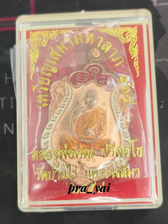 เหรียญเสมามหาลาภ 168 หลวงพ่อคูณ ปริสุทโธวัดบ้านไร่ นครราชสีมา ปี 2558 เนื้อทองแดง ลงยายันต์แดง หลังแบบ แยกชุดกรรมการ หมายเลข 1426 พร้อมกล่องเดิม
