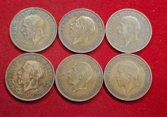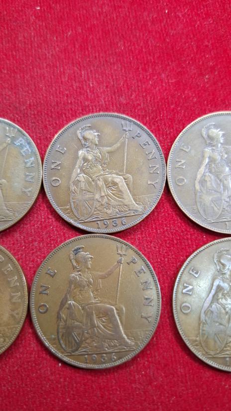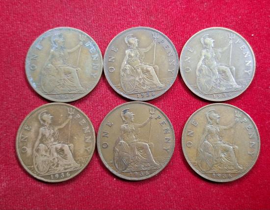 เหรียญเพนนีอังกฤษปี 1936 เหรียญใหญ่ ทั้งหมด6เหรียญ |