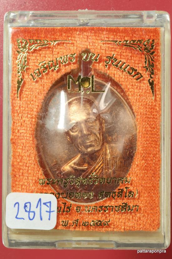เหรียญหลวงพ่อทอง รุ่นเจริญพรบน ปี 2559 เนื้อทองแดง หมายเลข 2817