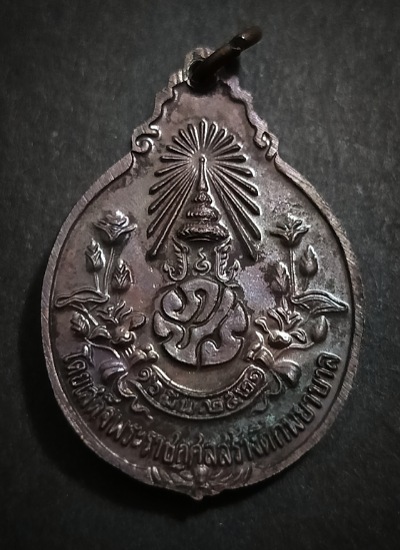 เหรียญรุ่นสร้างโรงพยาบาล หลวงปู่แหวน วัดดอยแม่ปั๋ง พิมพ์หลังภปร. เนื้อทองแดง ปี 2521