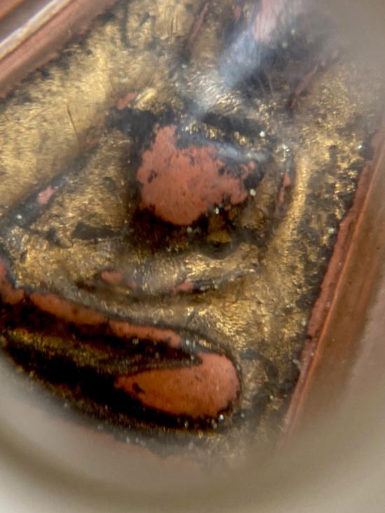 พระกรุเนื้อดินเก่าแท้ ไม่ทราบที่แน่ชัด องค์นี้ผิวเดิมขึ้นชัดทั่วหน้าองค์ พิมพ์ทรงขลังดูดี มีเสน่ห์แบบพระกรุโบราณแท้ ๆ คราบกรุเก่าติดทั่วองค์ สภาพสวยสมบูรณ์ มีเลี่ยมเก่าเดิมหูหิ้วครบพร้อมแขวน