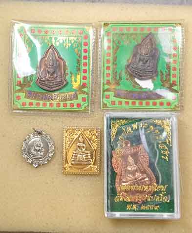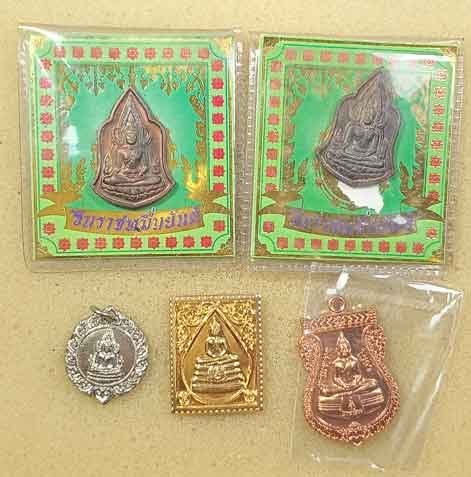 พระพุทธชินราช 3 เหรียญ + หลวงพ่อโสธร 2 เหรียญ