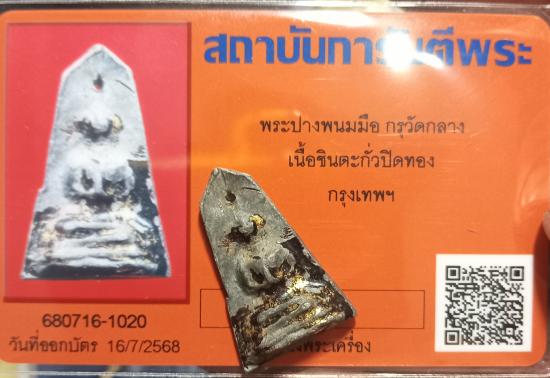 เคาะเดียวแดง+++พระกรุวัดกลางตลาดพลู (พระวัดจันทาราม) กรุงเทพ พิมพ์พนมมือ เนื้อชินตะกั่ว ลงรักปิดทองเดิมมาพร้อมบัตรการันตีพระครับ