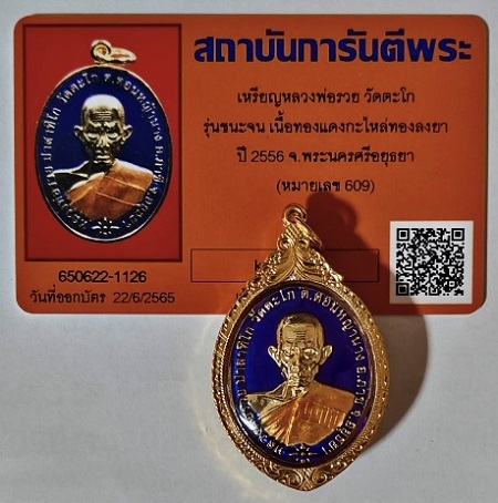 เหรียญชนะจน ปี ๒๕๕๖ หลวงพ่อรวย วัดตะโก ไม่เคยผ่านการใช้งาน เลี่ยมทองพร้อมใช้