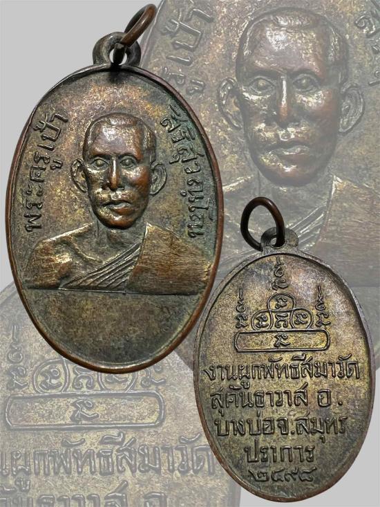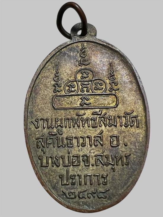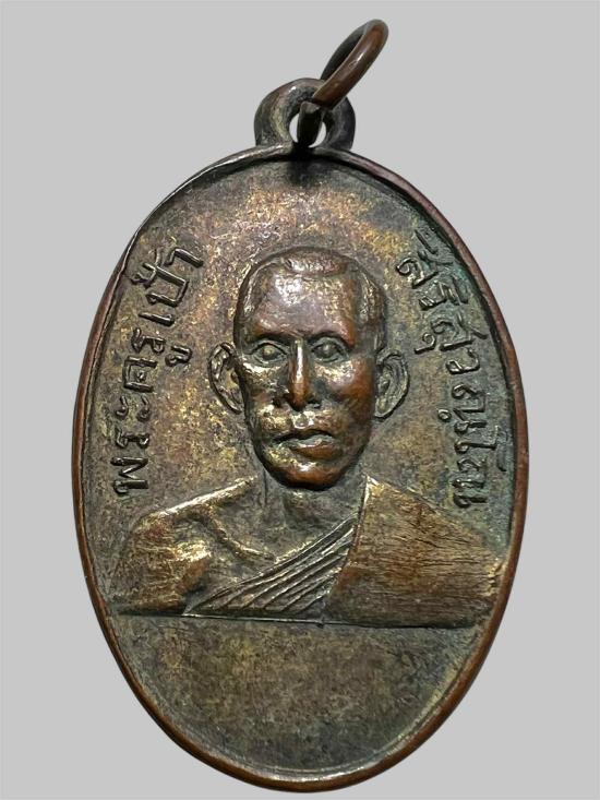 เหรียญพระครูเป้า วัดสุคันธาวาส จ.สมุทรปราการ รุ่นแรก เนื้อทองแดงกะไหล่ทอง ปี 2498