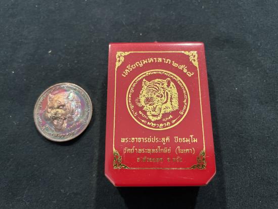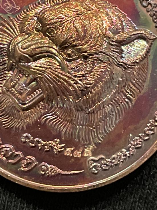 เหรียญหัวเสือมหาลาภ 2568 พระอาจารย์ประสูติ วัดในเตา จังหวัดตรัง เนื้อทองแดงผิวรุ้ง หมายเลข 595 |