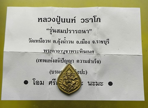 พระพิฆเนศ เนื้อฝาบาตร รุ่นสมปราถนา หลวงปู่นนท์ วราโภ วัดเหนือวน จ.ราชบุรี สวย มาเป็นชุด พร้อมใบคาถา วัดใจ ไม่มีกล่องนะครับ
